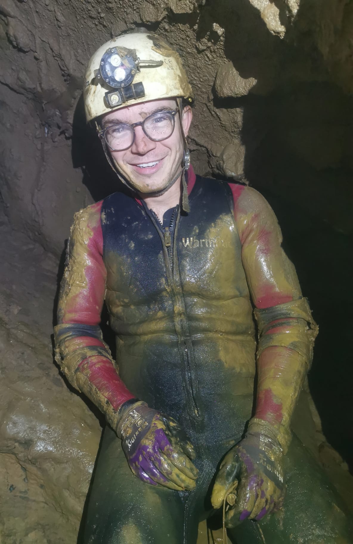 Joe quickly progressed up whilst Sam and I got cold in the draught. About 10m up he gained a ledge formed by a large ruck of boulders. From here a delicate traverse over holes led to a further rift which climbed out of sight. We called it quits here as it was getting late and we had a trek back out. The upward spiral choke was awkward with bags but what was more terrifying was the glutenous mud which nearly killed Sam and I, luckily for us Joe was on hand and keen to rid his ‘Soulless’ nickname and jumped in to save the day and retrieve our wellies! Ideally this requires some stepping stones.