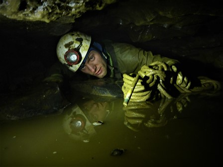 Just Luke and I on this fine warm evening. It was Luke’s first time down Waterfall Hole and it’s certainly one to get acquainted with… The entrance crawl was as pleasant as always and luckily it’s still rigged so easy progress down to Hockenhull’s rift.