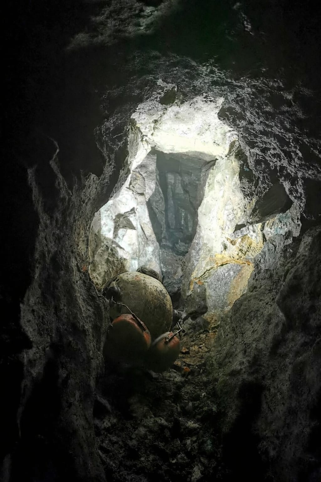 There was a large flake on the left had wall that if removed would give access into the more open rift but it would have been more advisable to remove some more of the left had wall to get it out. It got the better of me and Rob’s glory grabbing traits were rubbing off. So I capped it and yes as suspected it flew forward and blocked the way on. At this point I thought it was a good idea to swap with Rob and advised that some of the left had side needed taking out to get the huge flake out. Cheers Rob.