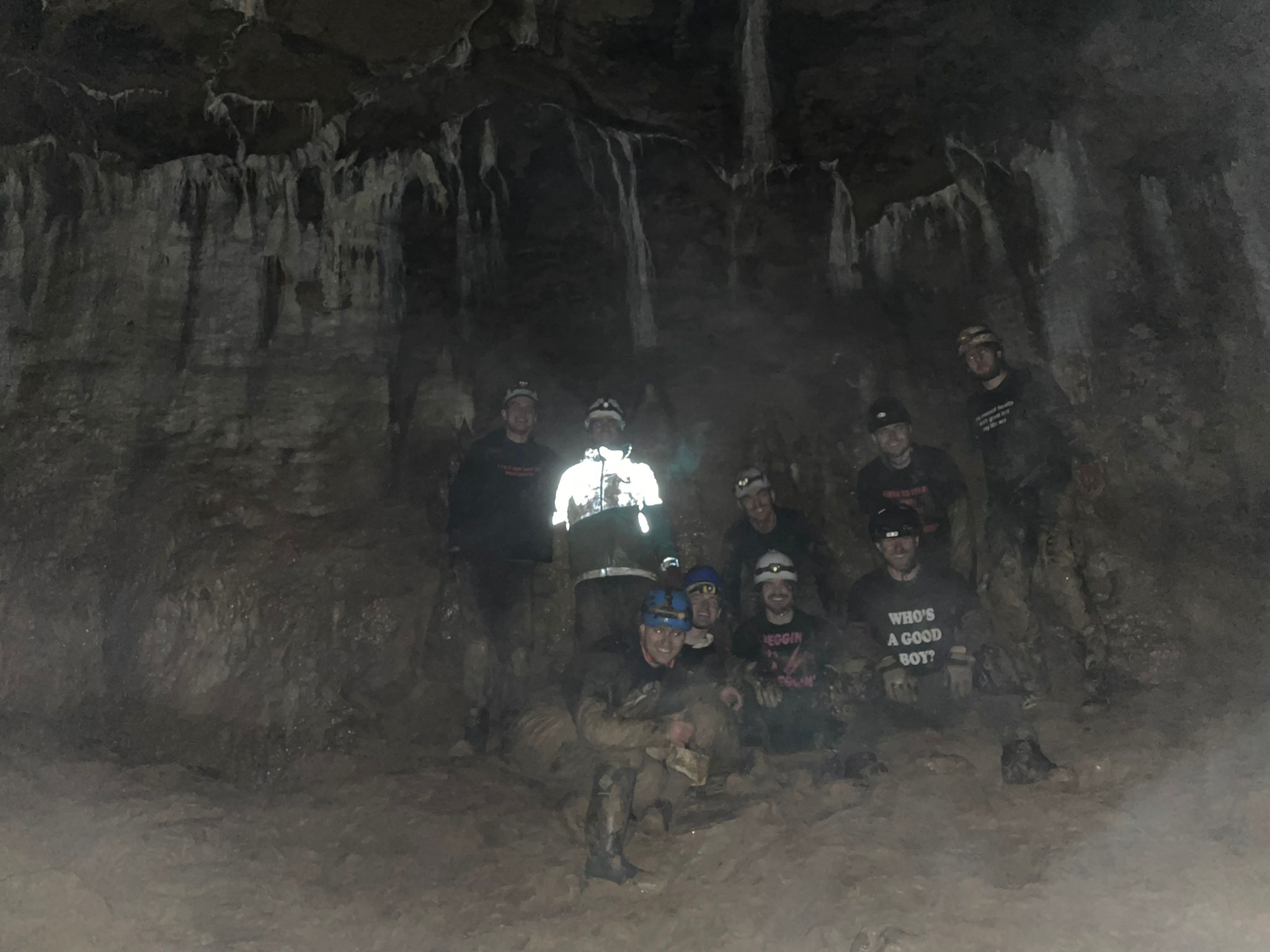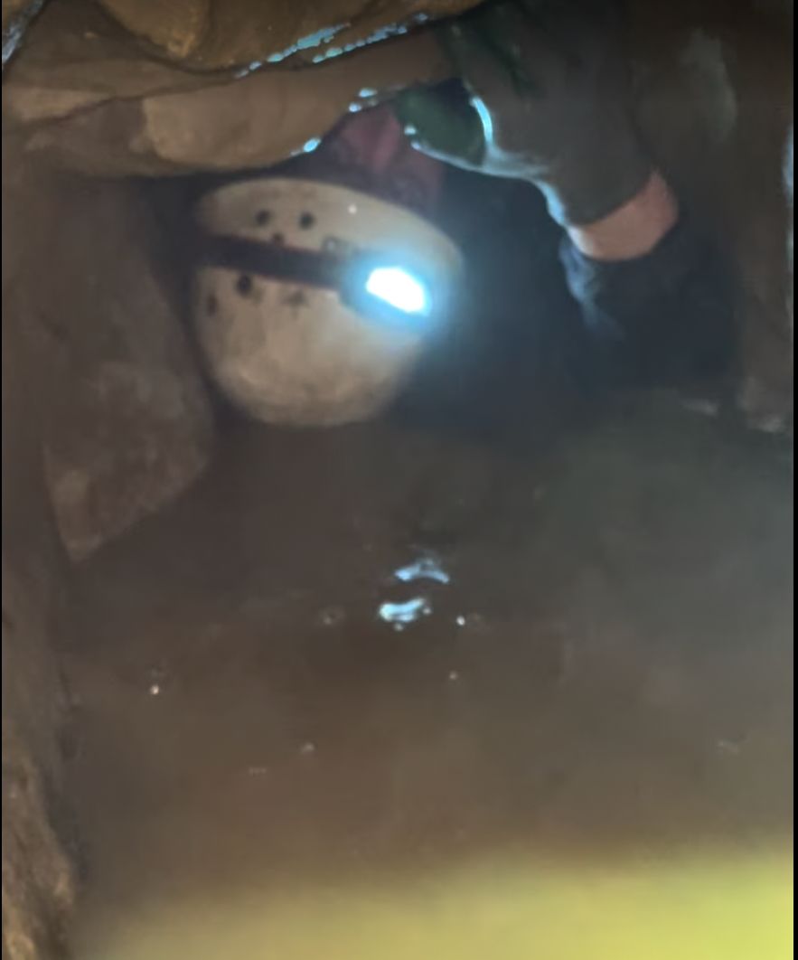 Eventually, we reached the first chamber, where several people immediately started shedding layers. From there, we moved into the main chamber and began descending the first boulder choke. The group handled the squeezes and scrambles well, and we soon arrived in Fox’s Chamber, one of the highlights of the cave which is (20x10x30m - by my best judgement)