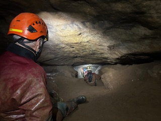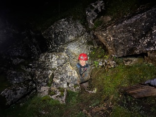 The entrance is fine and we were out of the rain. Julian headed down into the entrance rift. Several people had been there ages ago so it took a minute to test which way lead on. It is a very narrow rift which had everyone on their side like a snake to pull yourself through inch by inch. One of us gave up ..won’t name anyone…as it is really tight.